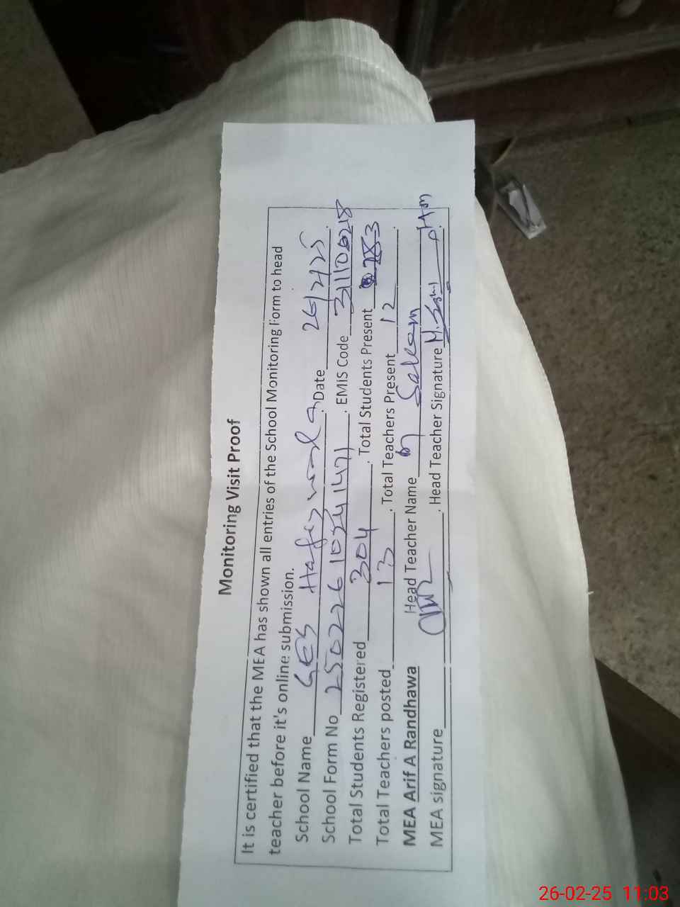 | EMIS Code: 31110218 | Name of School: GES HAFIZ WALA | |||
