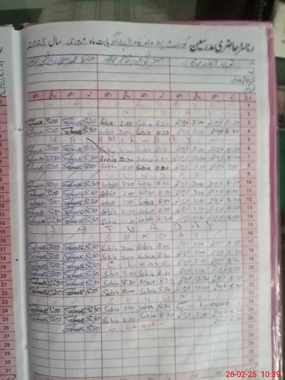 | 31**** | So**** Na**** | 3 | 1 | 0 | 0 | 0 | 0 | 0 | 0 | 0 | 0 | 0 | Absent (Un-Authorized) |