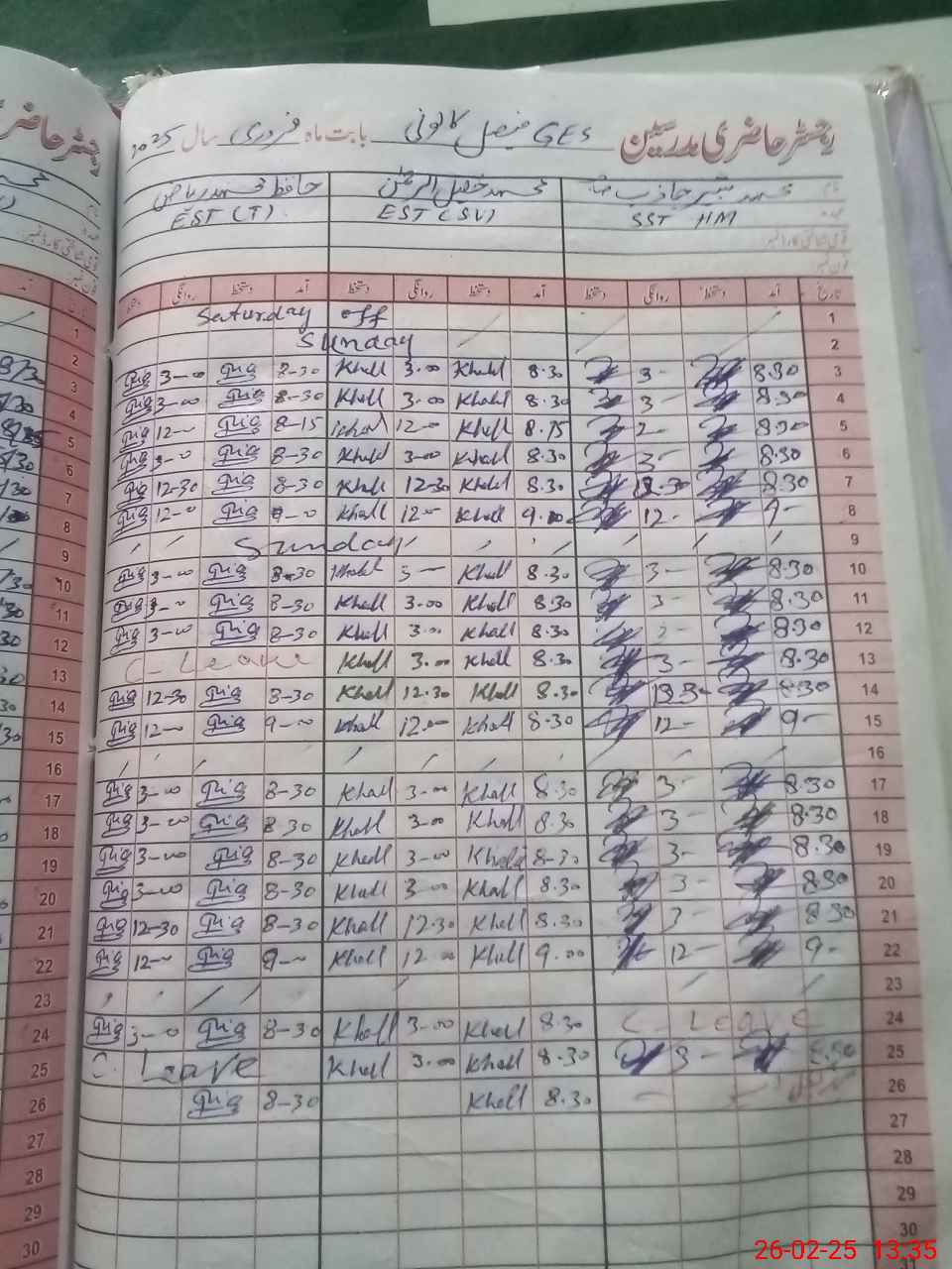 | Leave | Duty | Absent | Maternity | Medical | Ex- Pak |