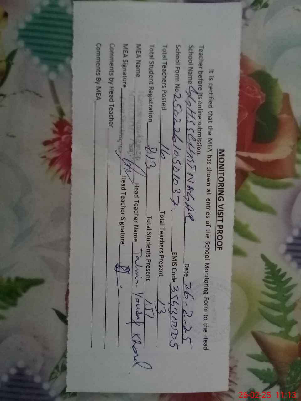 | Certified that this School was Inspected by the Undersigned MEA/DMO Today and the Information Stated Above is as Per Record. | |||||