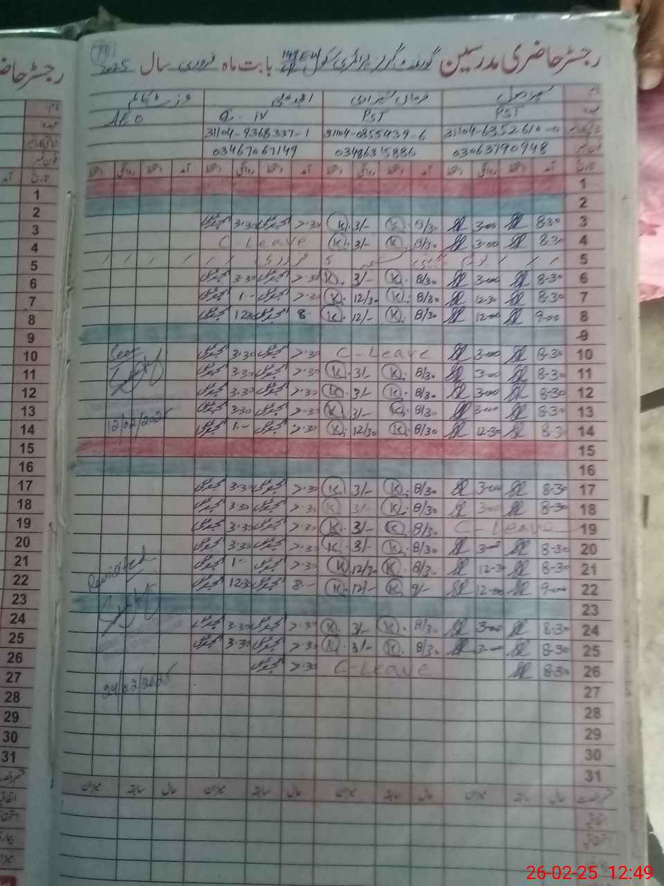| CNIC | Full Name | Designation | R/C | Absence During Last Calender Month |