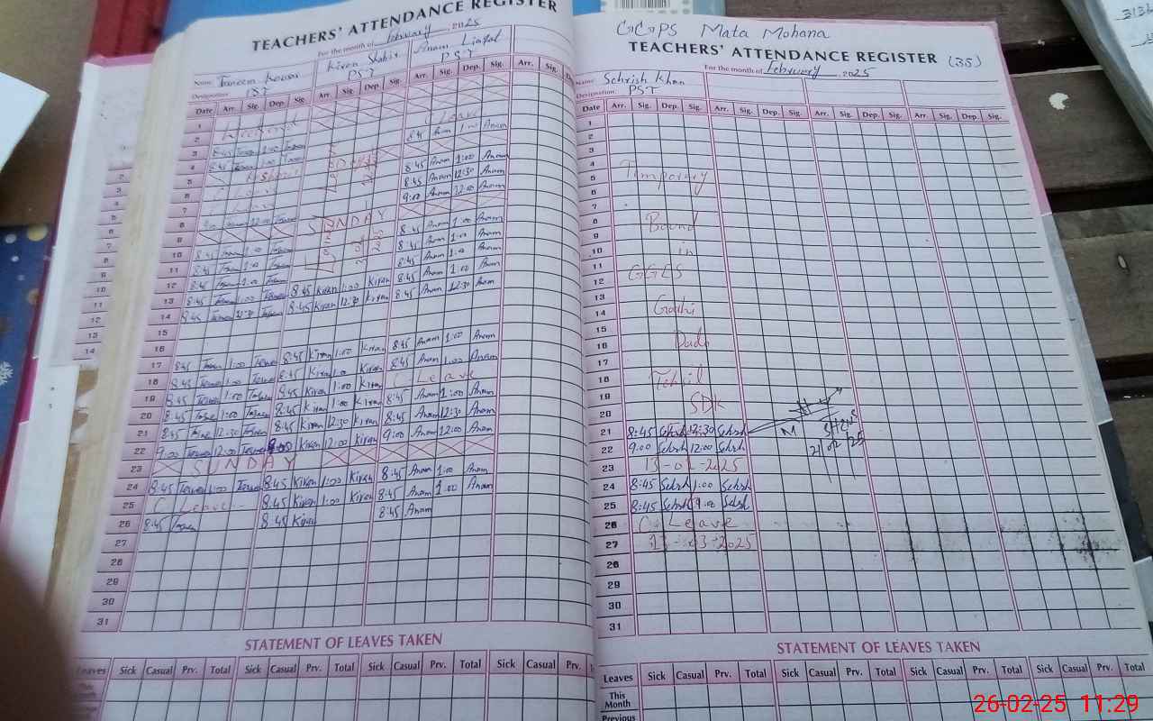 | Attendance Register | Head Teacher | MEA with School | Visit Proof |