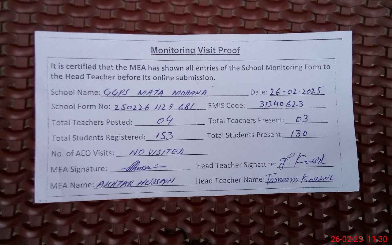 | EMIS Code: 31340623 | Name of School: GGPS MATA MOHANA | |||