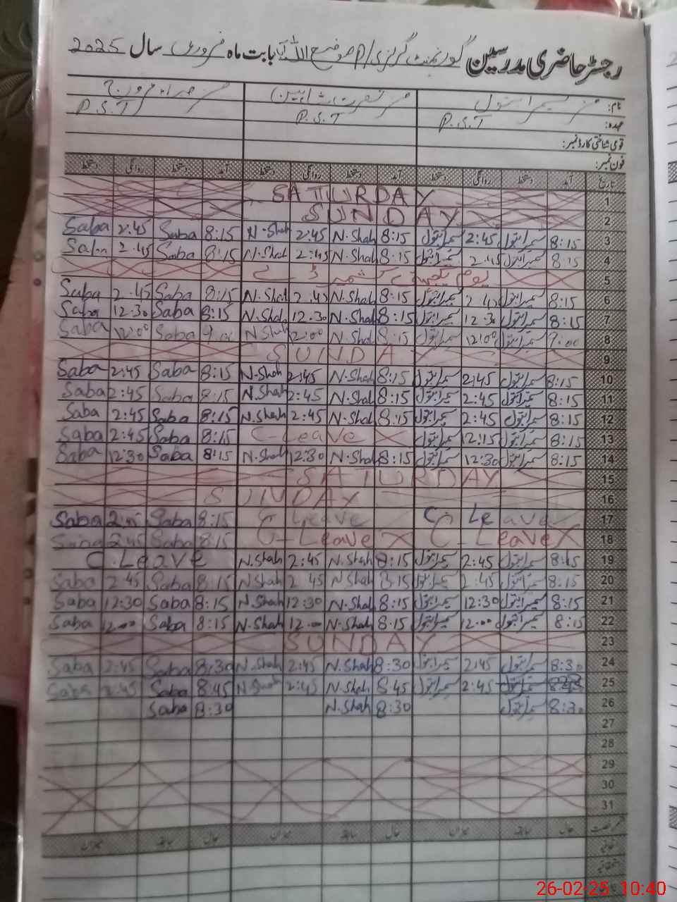 | Leave | Duty | Absent | Maternity | Medical | Ex- Pak |