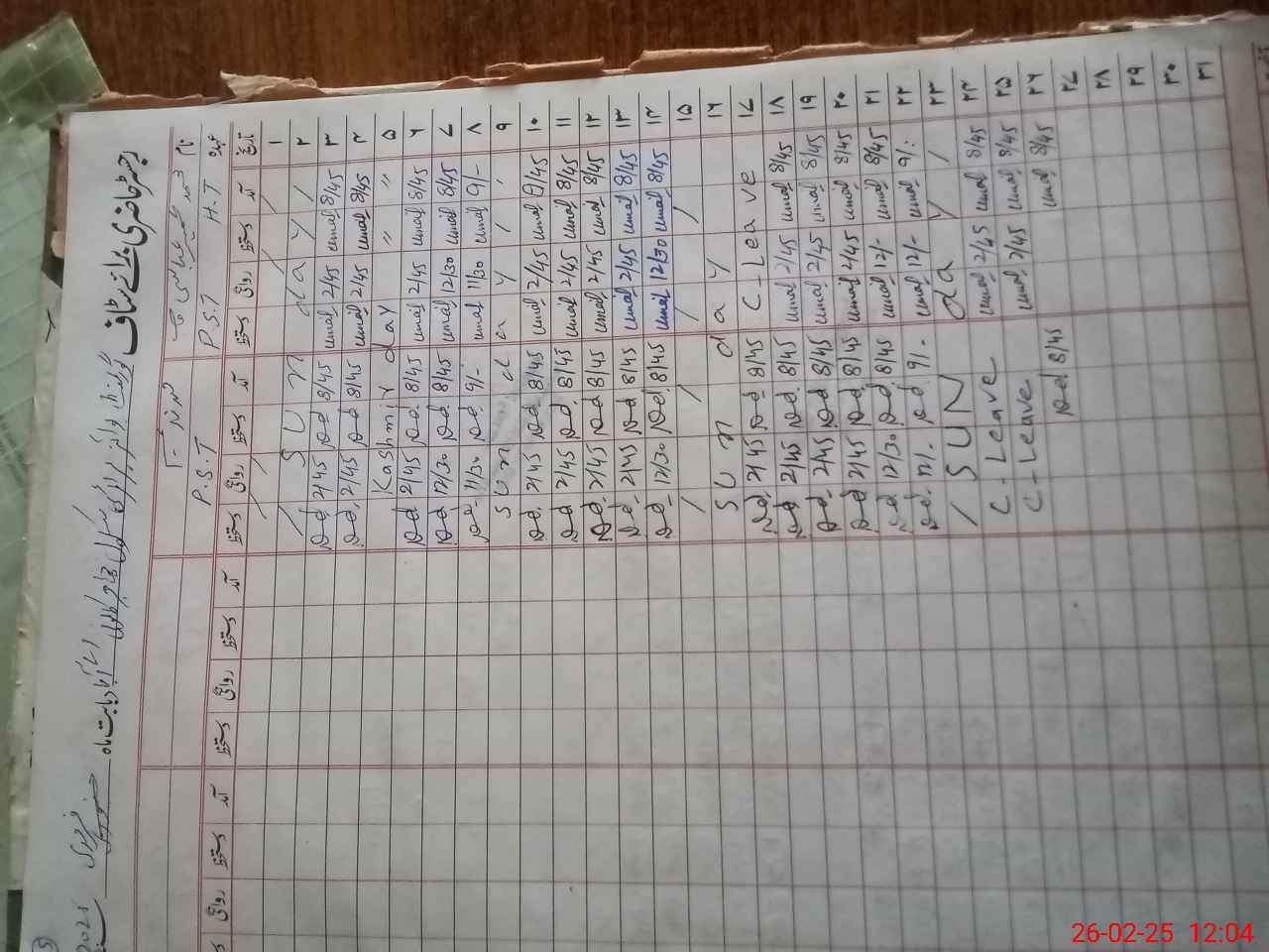 | Leave | Duty | Absent | Maternity | Medical | Ex- Pak |