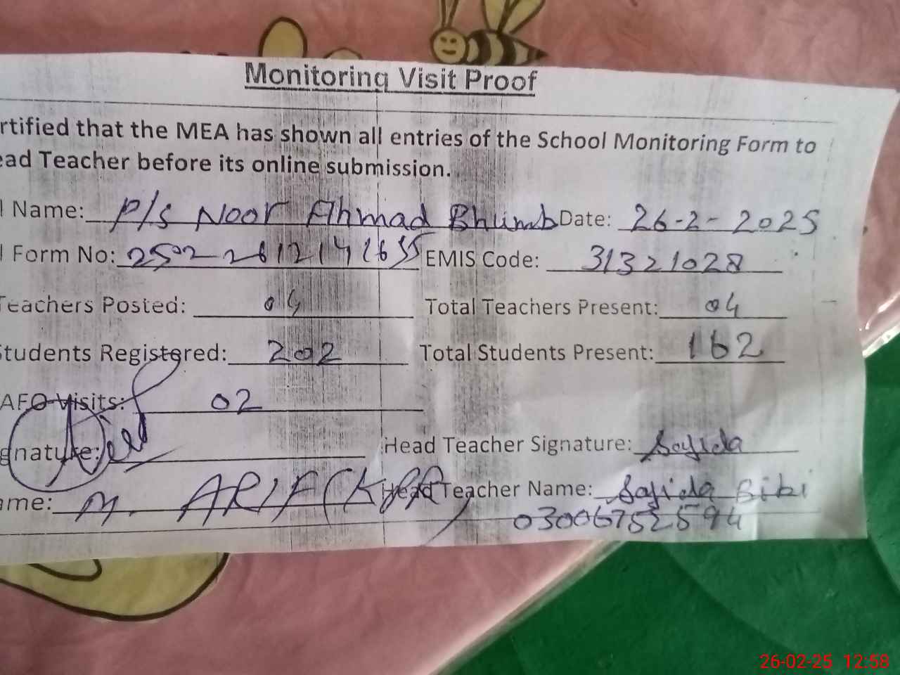 | EMIS Code: 31321028 | Name of School: GGPS NOOR AHMED BHOMB | |||