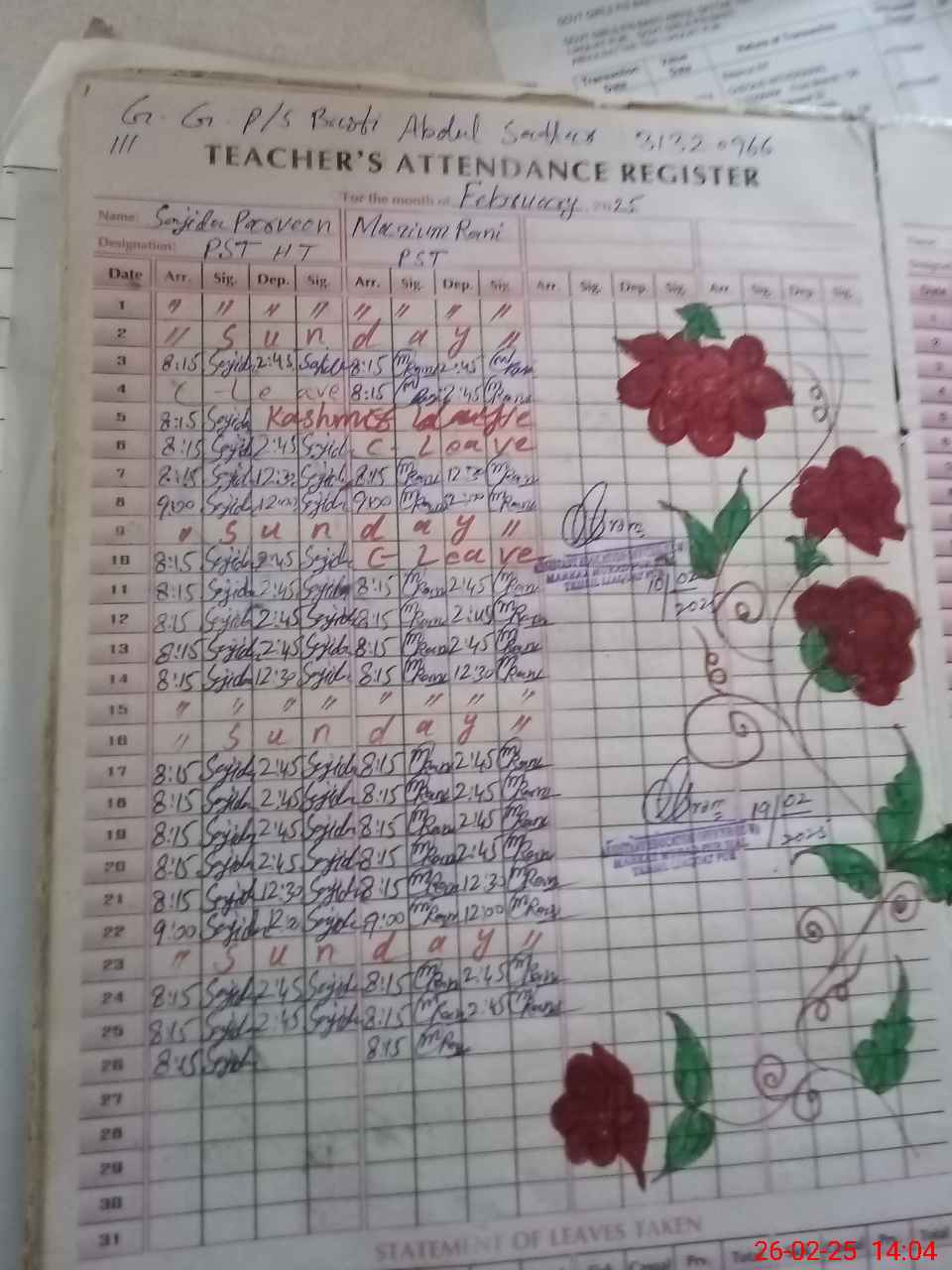 | Name: Sa**** Pe**** Designation: (School Headmaster's/Headmistress's) PST Phone/Cell Number: 03**** |
