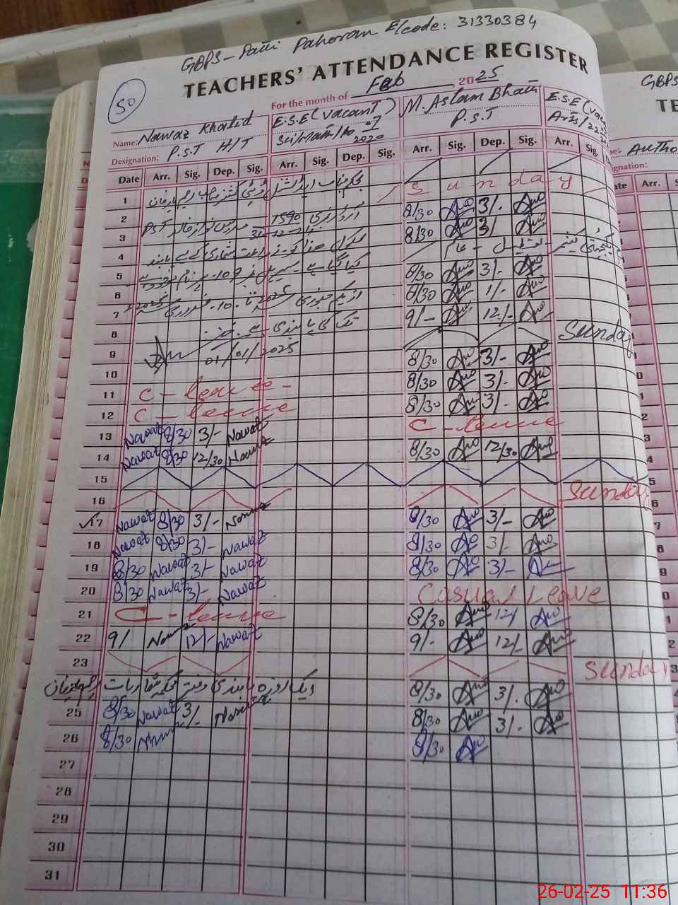 | CNIC | Full Name | Designation | R/C | Absence During Last Calender Month |