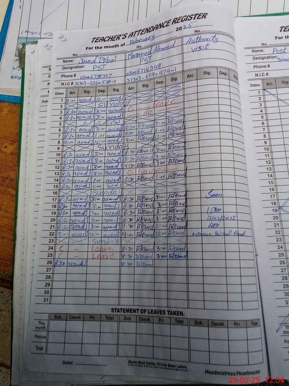 | Name: JA**** IQ**** Designation: (School Headmaster's/Headmistress's) PST/PTC/JV Phone/Cell Number: 03**** |