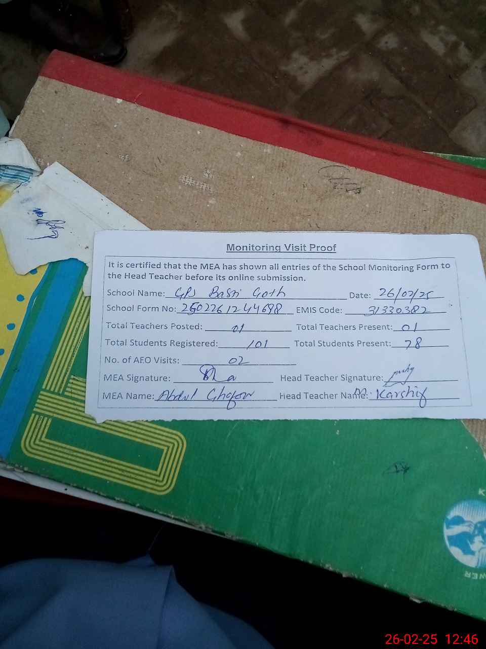 | EMIS Code: 31330382 | Name of School: GPS BASTI GOOTH | |||