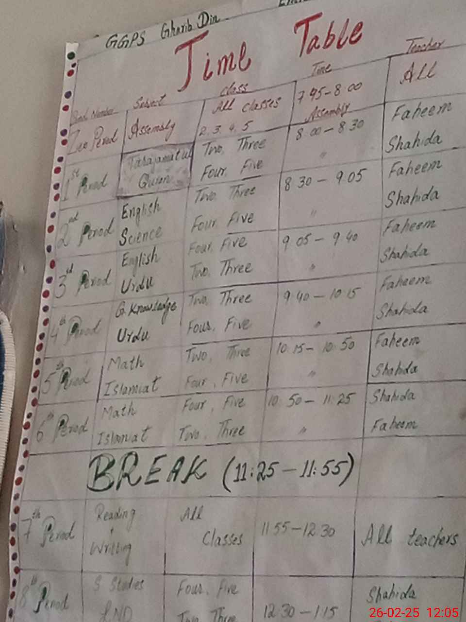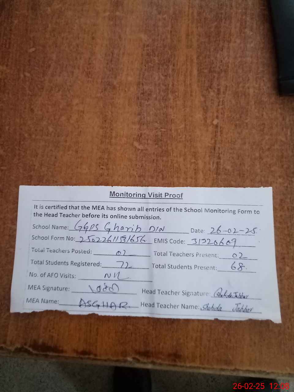 | EMIS Code: 31320609 | Name of School: GGPS GHARIB DIN | |||