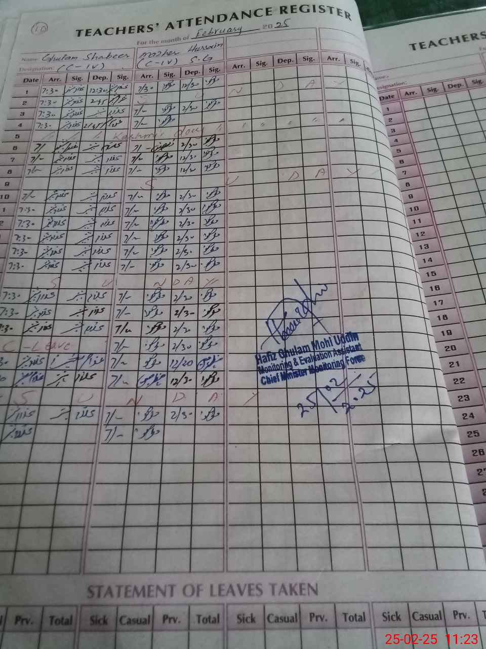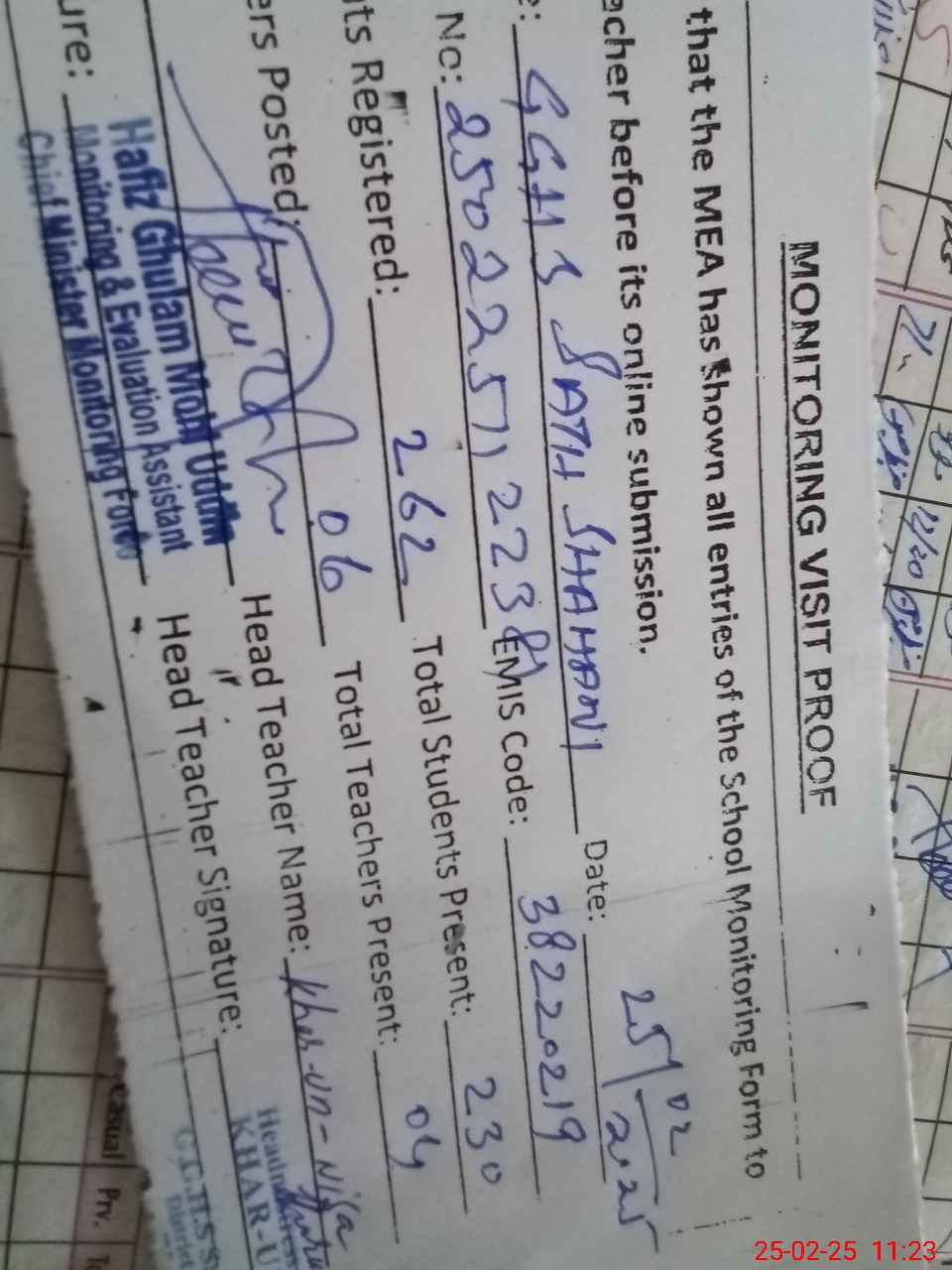 | Attendance Register | Head Teacher | MEA with School | Visit Proof |