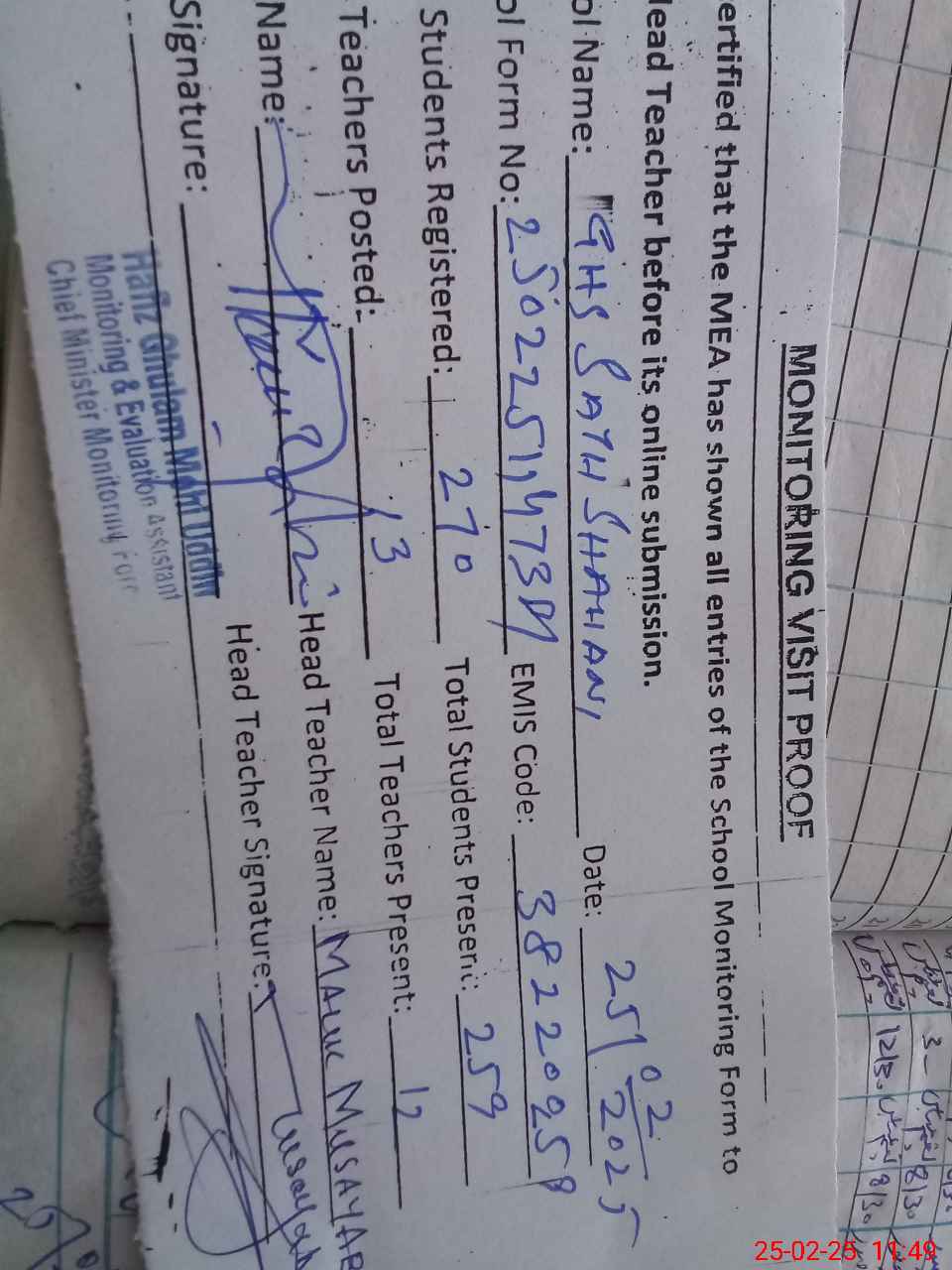 | EMIS Code: 38220259 | Name of School: GHS SATH SHAHANI | |||