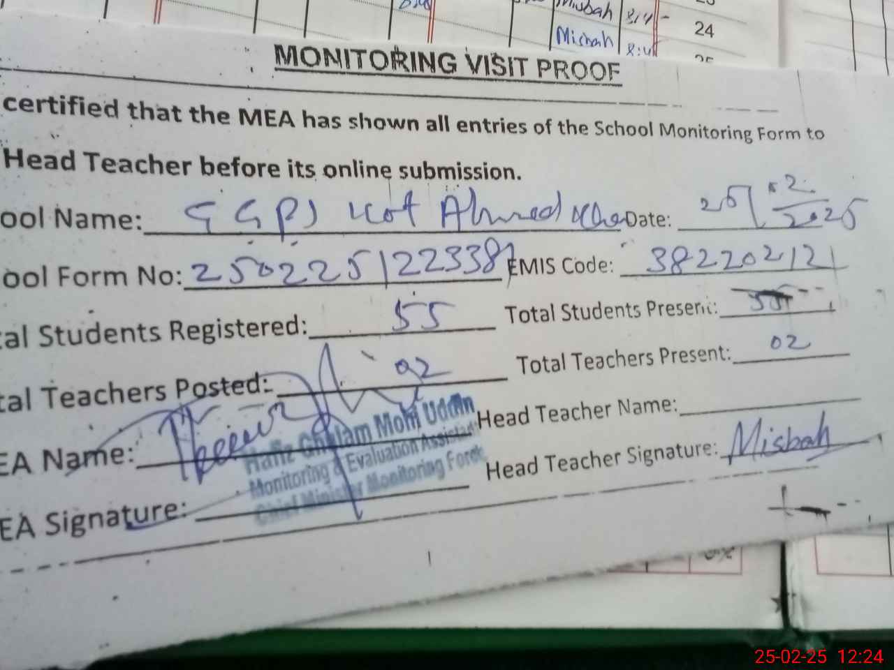 | EMIS Code: 38220212 | Name of School: GGPS KOT AHMAD KHAN | |||