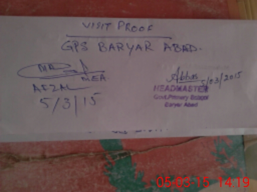 | EMIS Code: 32320169 | Name of School: GPS BARYAR ABAD | |||