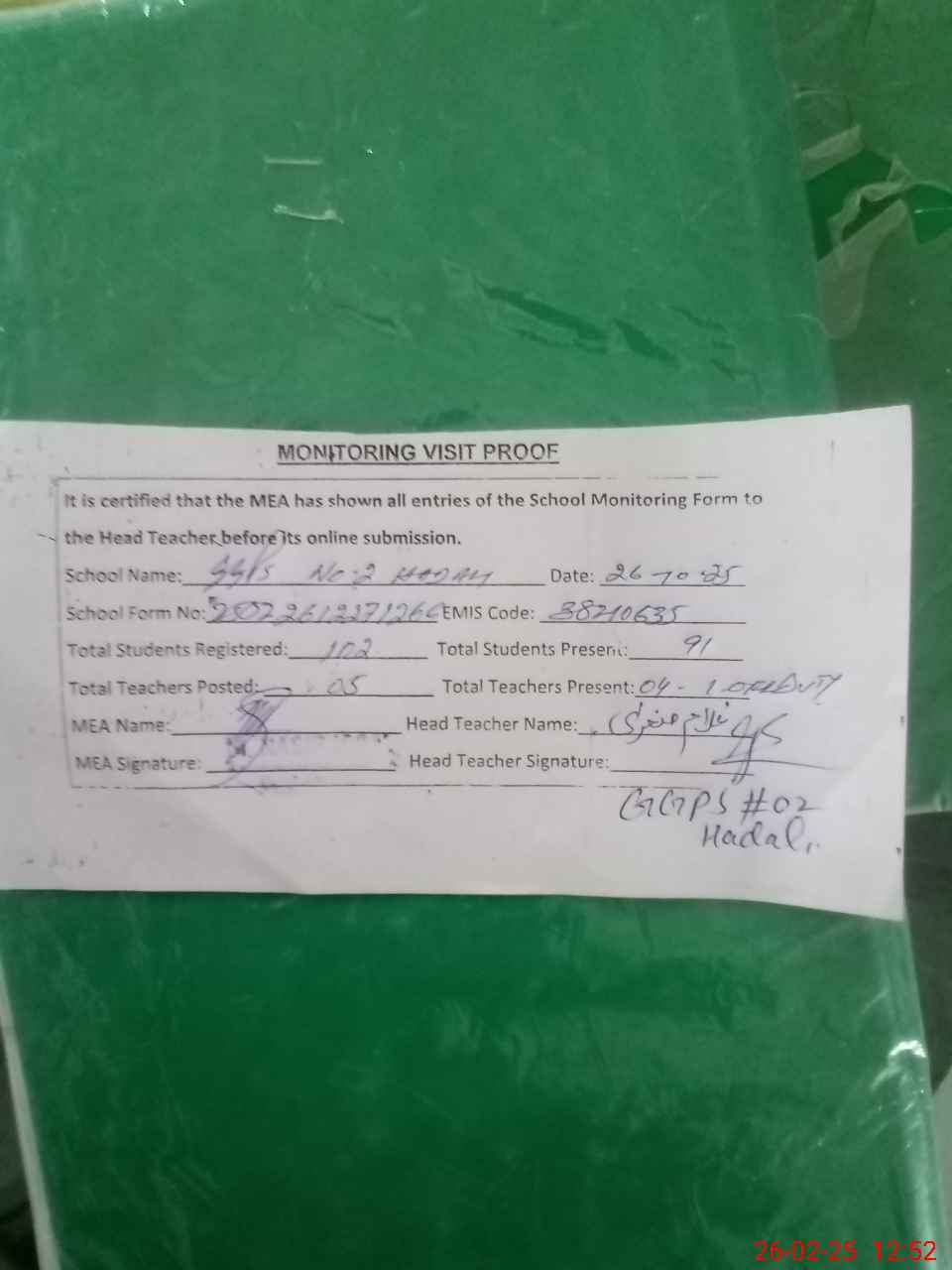 | EMIS Code: 38210635 | Name of School: GGPS NO. 2 HADALI | |||