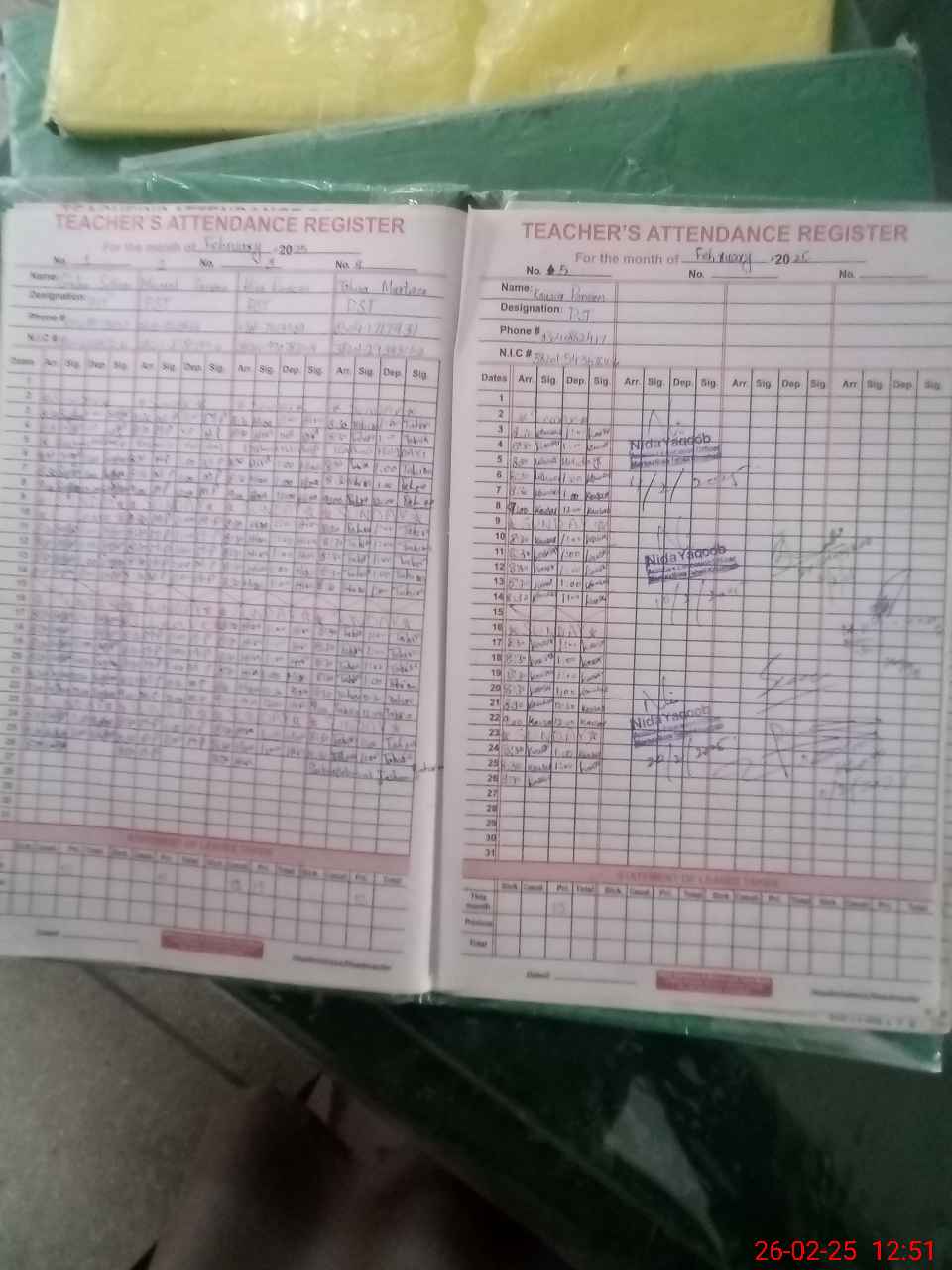 | CNIC | Full Name | Designation | R/C | Absence During Last Calender Month |