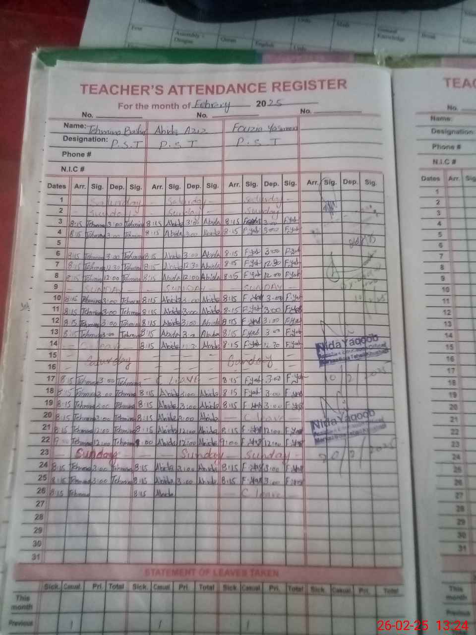 | Name: Te**** Ba**** Designation: (School Headmaster's/Headmistress's) PST Phone/Cell Number: 03**** |