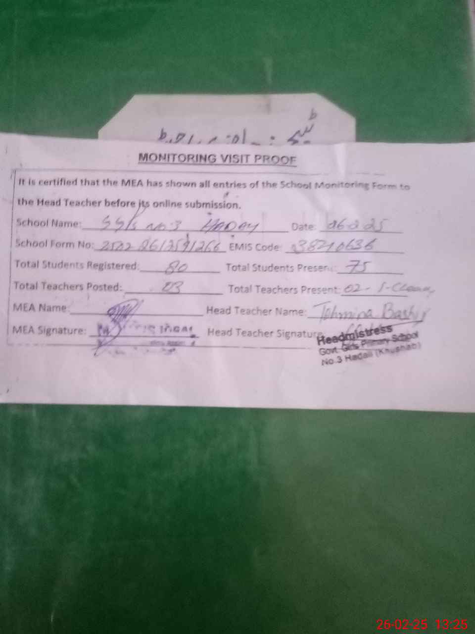 | EMIS Code: 38210636 | Name of School: GGPS NO. 3 HADALI NOOR HAYAT COLONY HADALI | |||
