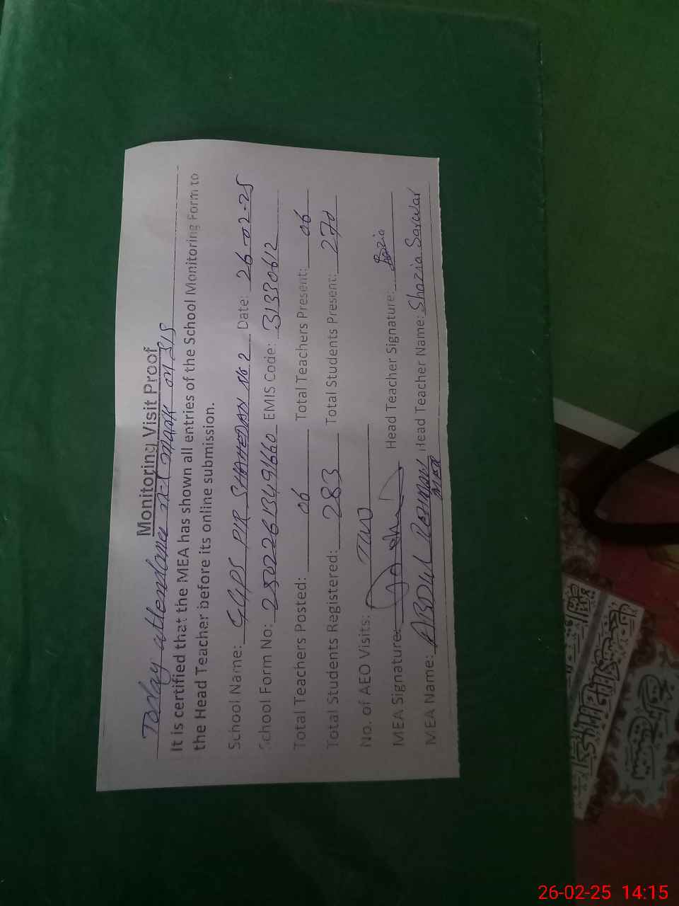 | EMIS Code: 31330612 | Name of School: GGPS PIR SHAHIDAN NO.2 | |||