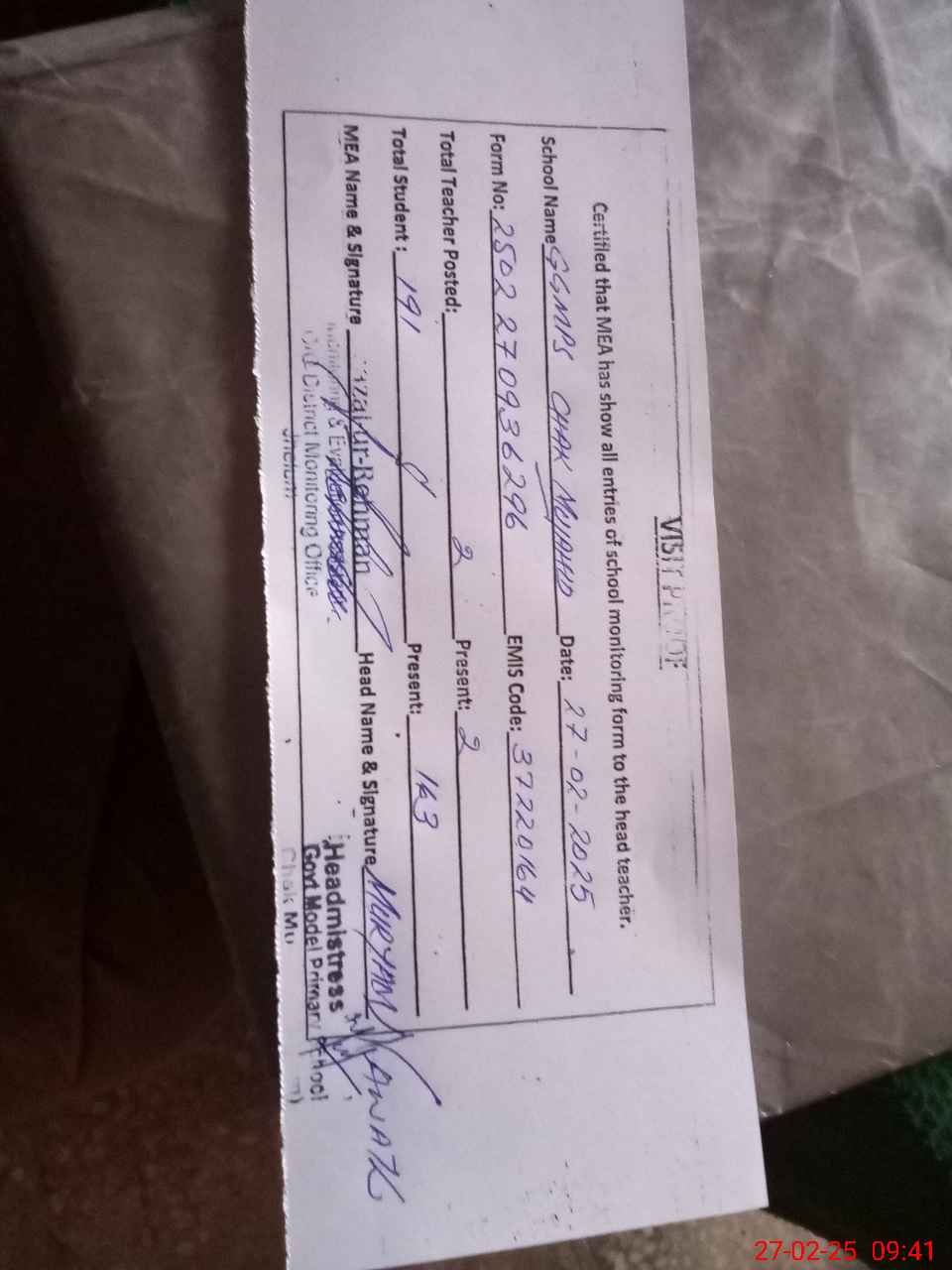 | EMIS Code: 37220164 | Name of School: GGMPS CHAK MUJAHID | |||