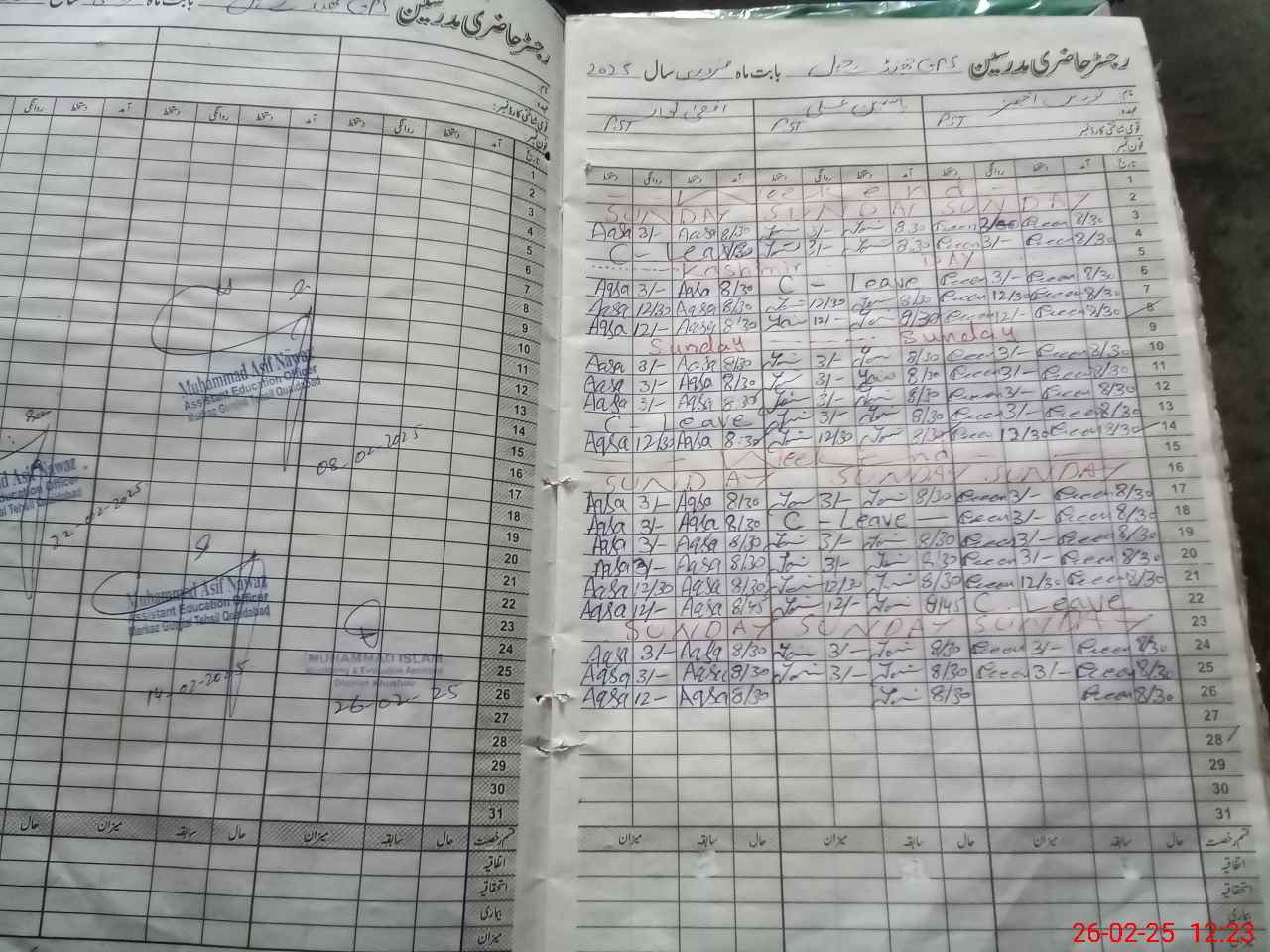 | CNIC | Full Name | Designation | R/C | Absence During Last Calender Month |
