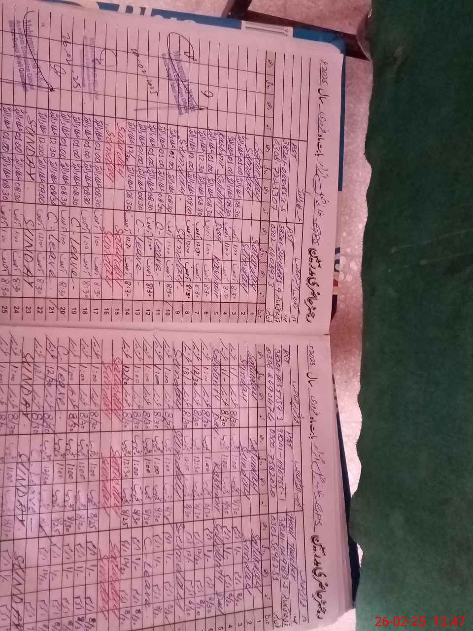 | CNIC | Full Name | Designation | R/C | Absence During Last Calender Month |