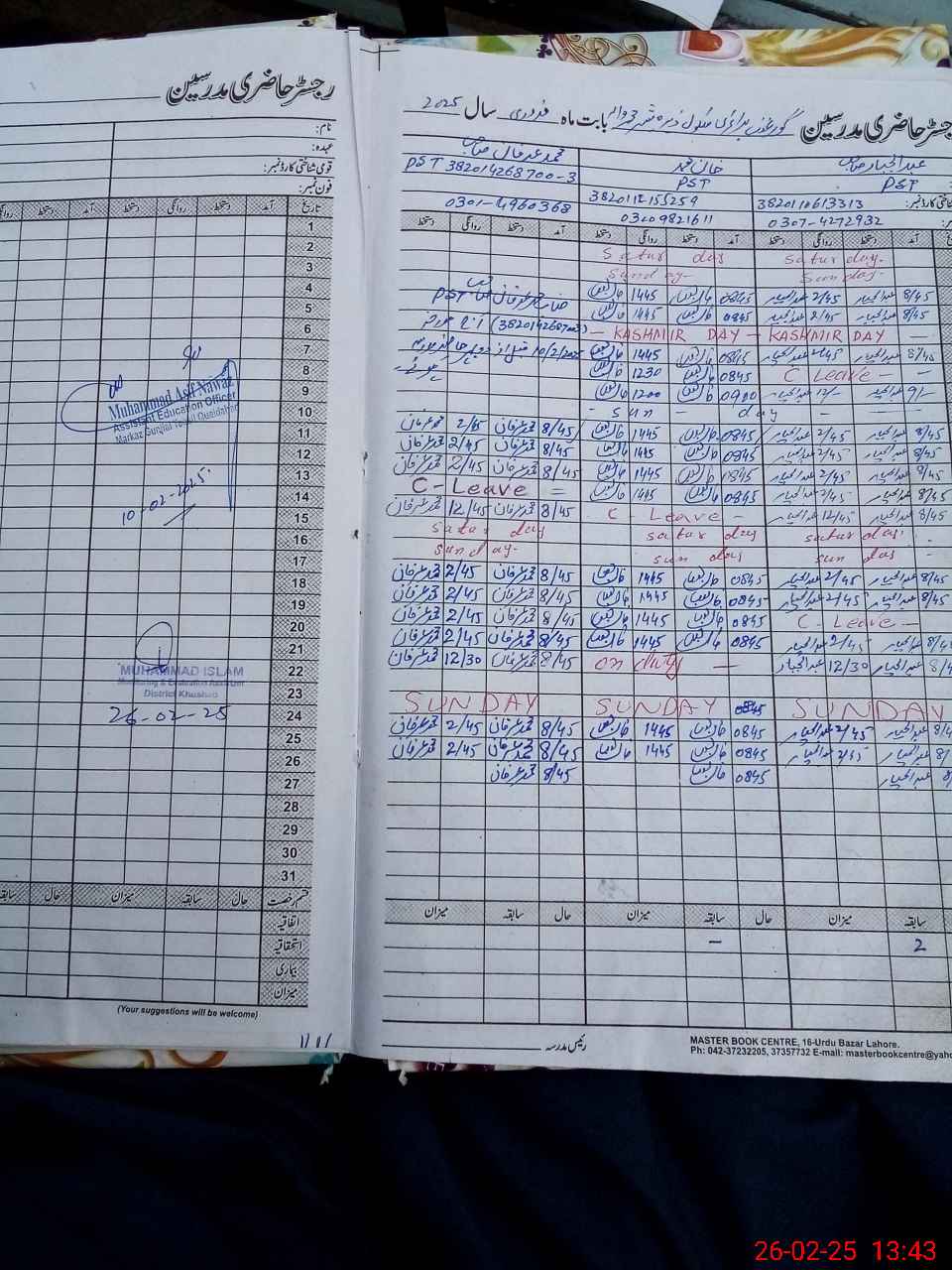| Name: Ab**** Ja**** Designation: (School Headmaster's/Headmistress's) PST/PTC/JV Phone/Cell Number: 03**** |