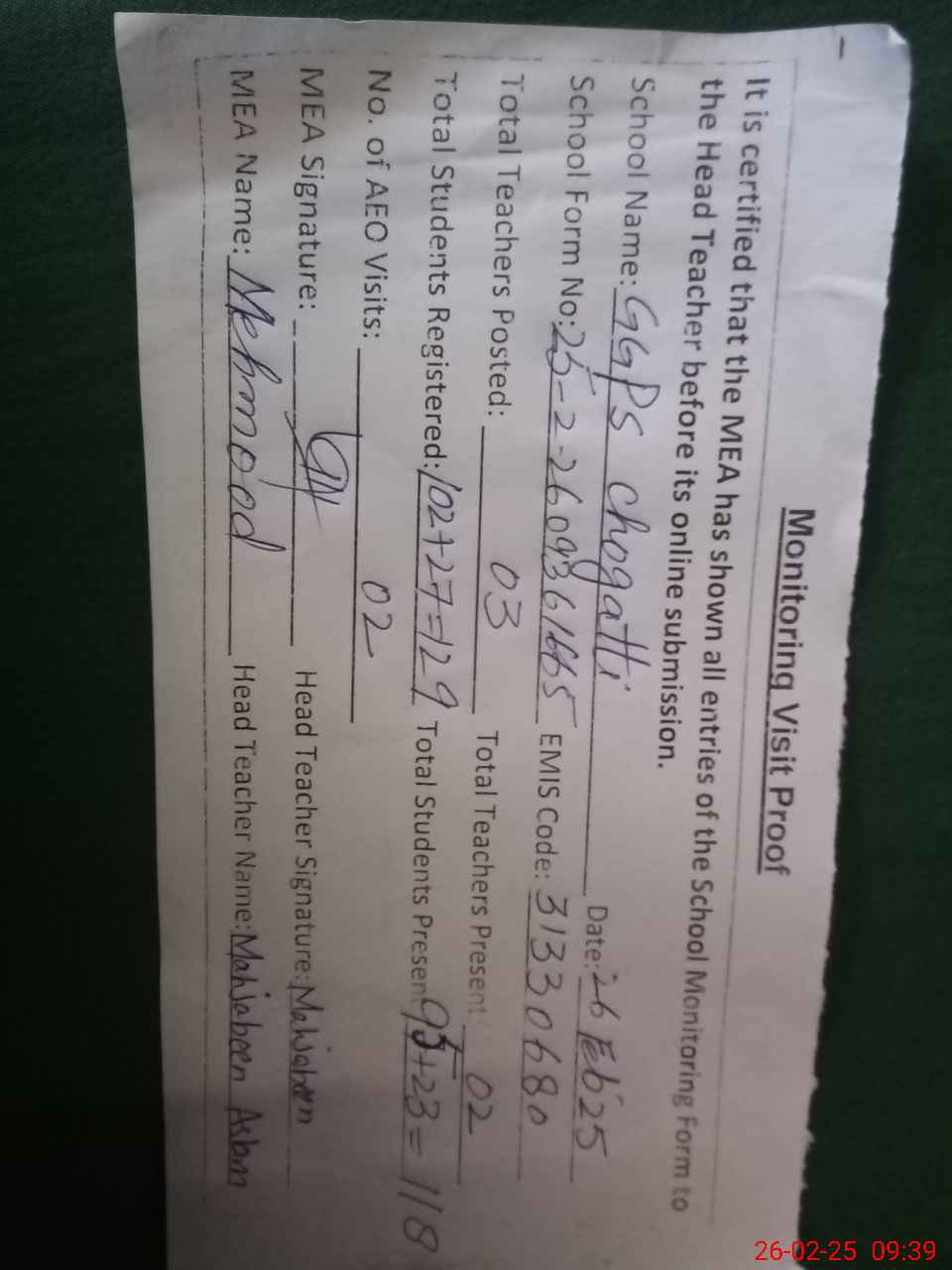 | EMIS Code: 31330680 | Name of School: GGPS CHOGATTI | |||
