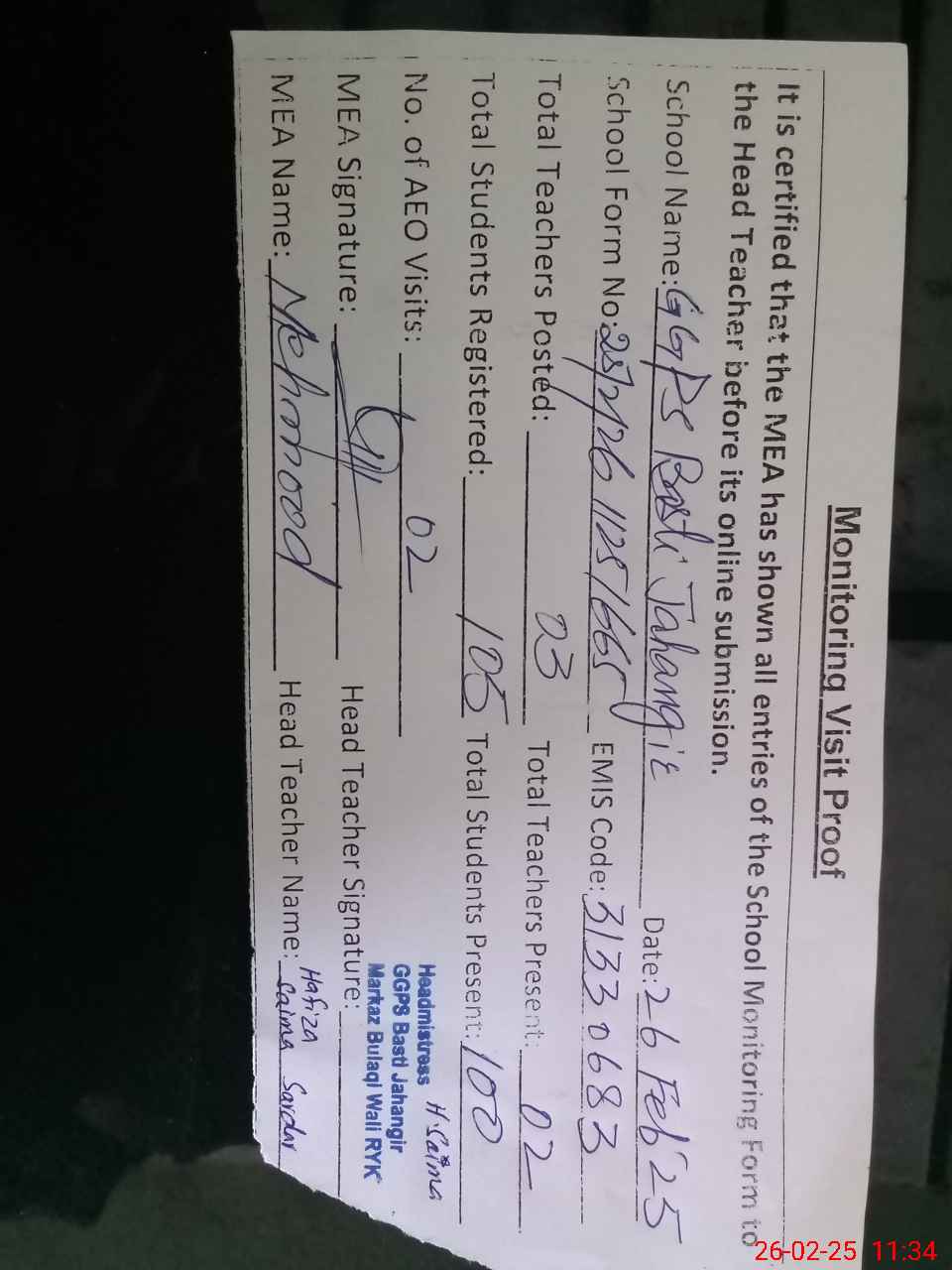 | EMIS Code: 31330683 | Name of School: GGPS BASTI JAHANGIR | |||