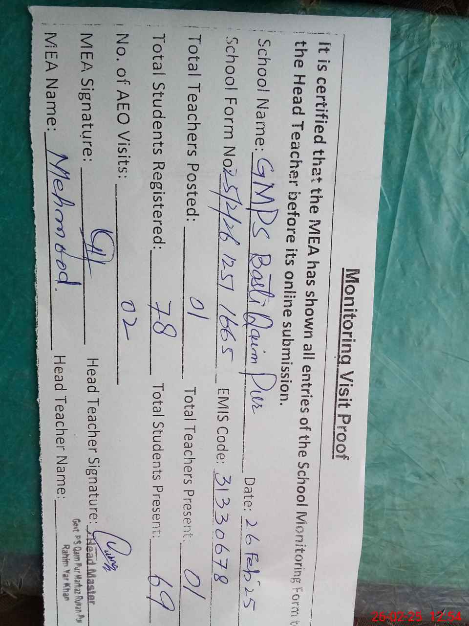 | EMIS Code: 31330678 | Name of School: GMPS BASTI QAIM PUR | |||