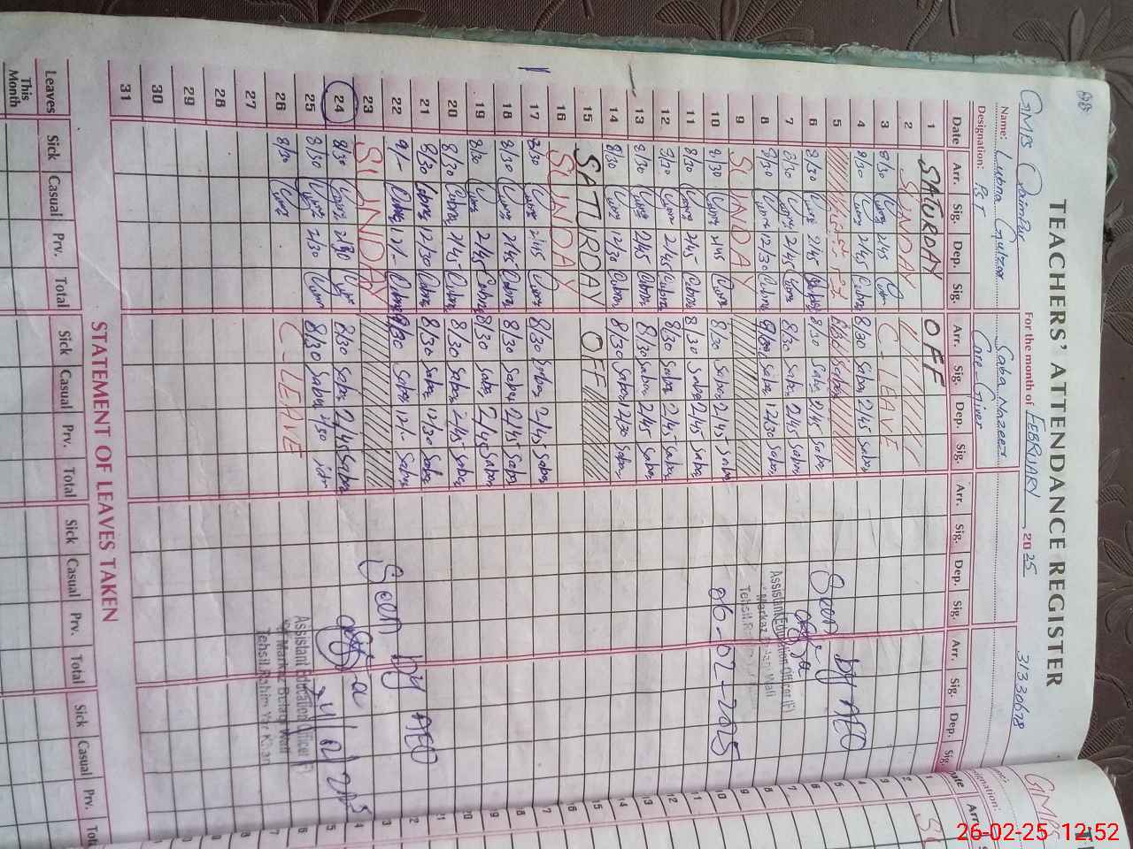 | Remarks (Use Separate Page if Required): GMPS two postion school 78 students but single teacher | |||||