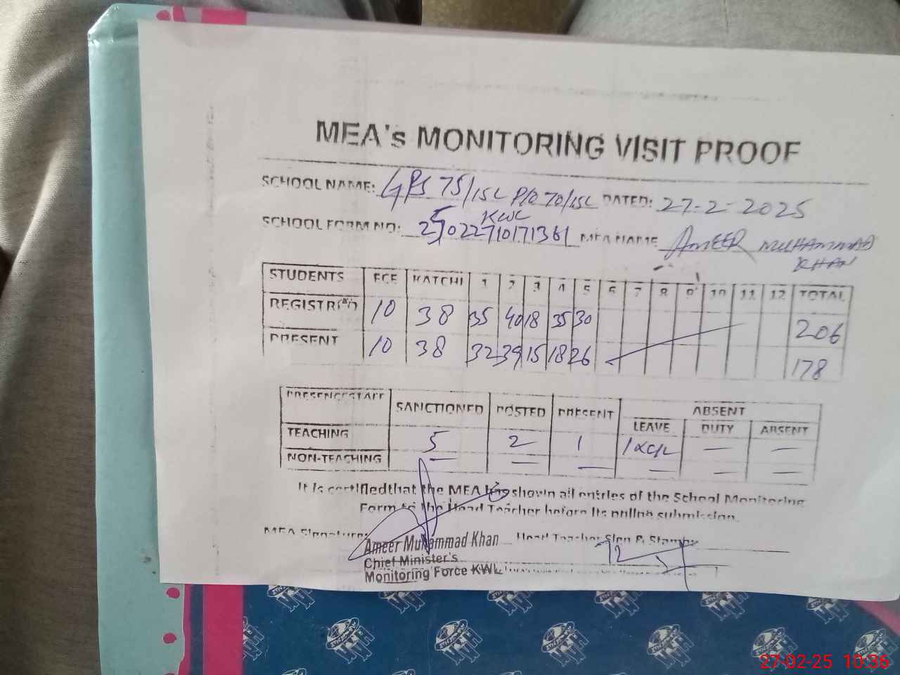| Certified that this School was Inspected by the Undersigned MEA/DMO Today and the Information Stated Above is as Per Record. | |||||