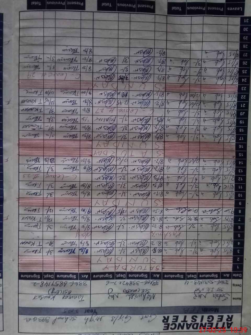 | Monitoring Date: 27-02-2025 | Start Time: 27-02-2025 09:59 AM | End Time: 27-02-2025 10:40 AM | Name of MEA: MU**** MA**** | |
