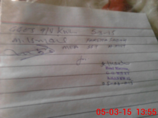 | Monitoring Date: 05-03-2015 | Start Time: 05-03-2015 01:33 PM | End Time: 05-03-2015 01:55 PM | Name of MEA: Z.**** M.Is**** | |