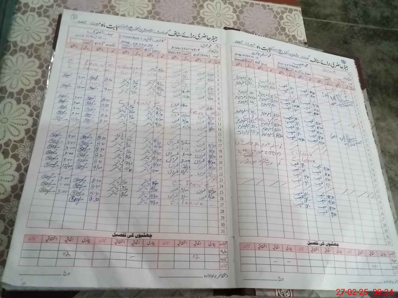 | CNIC | Full Name | Designation | R/C | Absence During Last Calender Month |