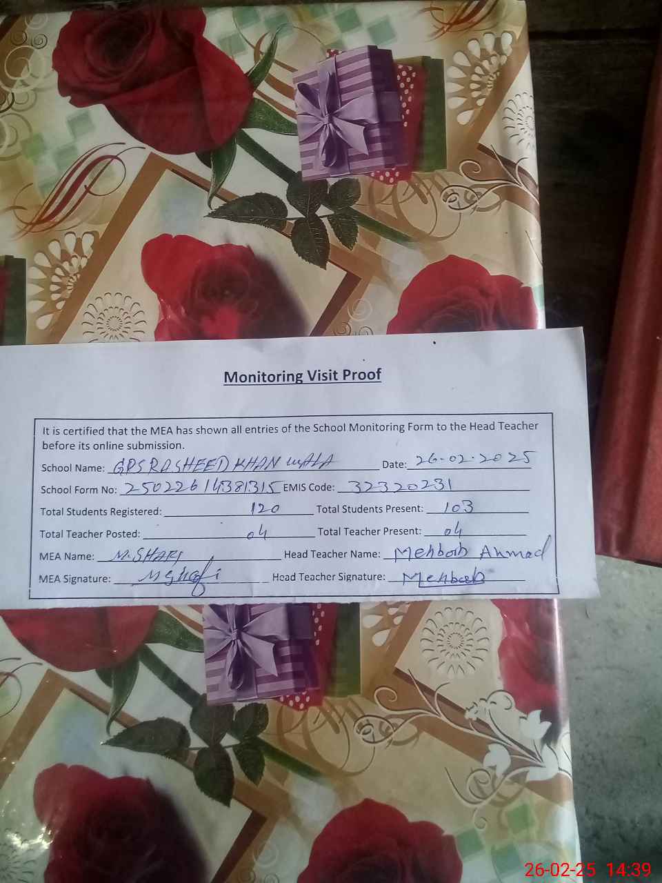 | EMIS Code: 32320231 | Name of School: GPS RASHEED KHAN WALA | |||