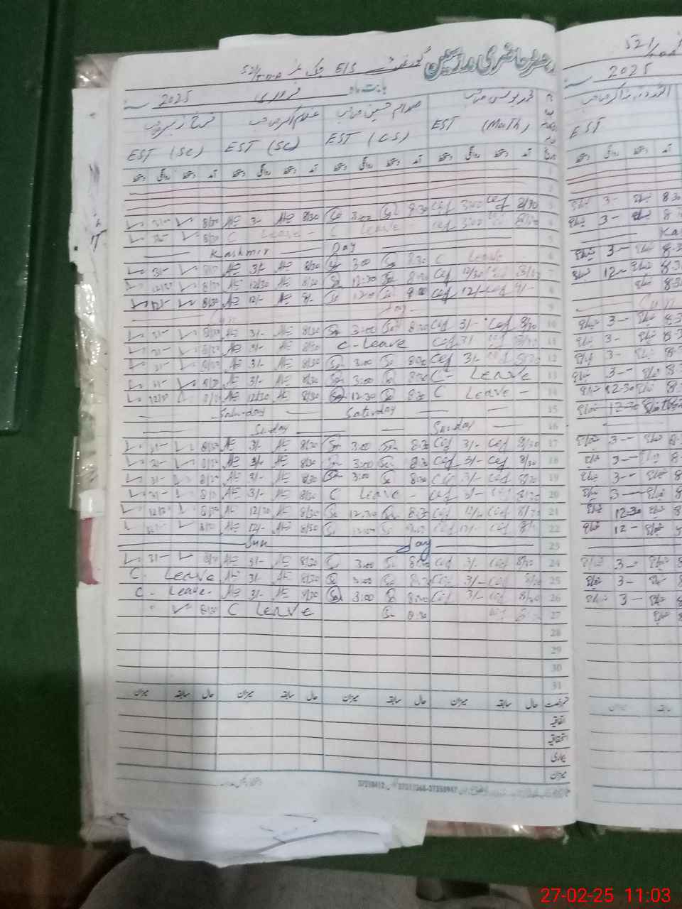 | Leave | Duty | Absent | Maternity | Medical | Ex- Pak |