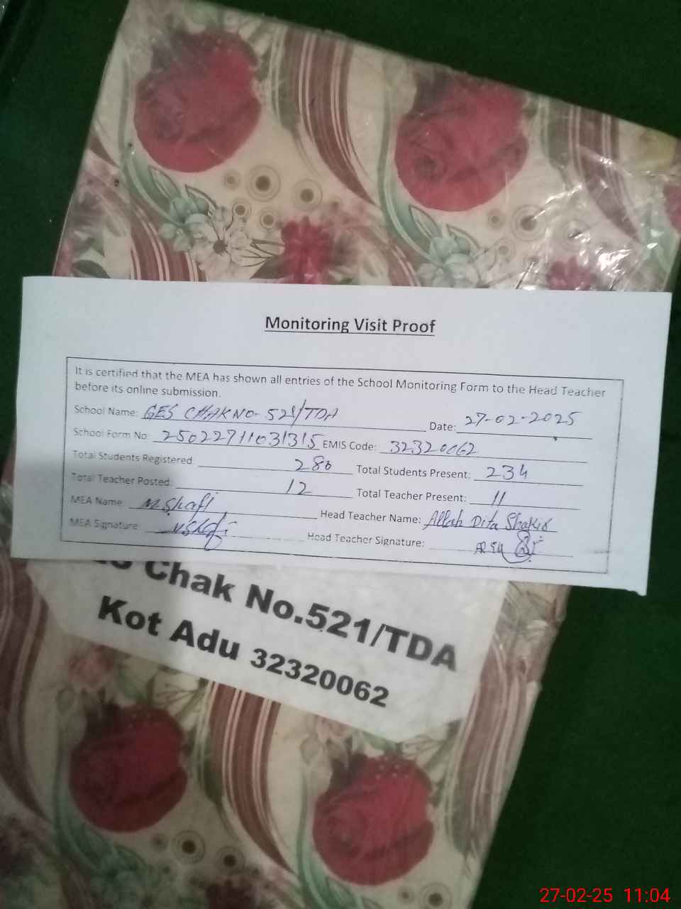 | EMIS Code: 32320062 | Name of School: GES CHAK NO.521 TDA | |||