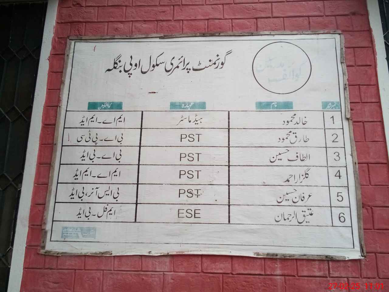 | EMIS Code: 38460264 | Name of School: GPS UPPI BANGLOW | |||