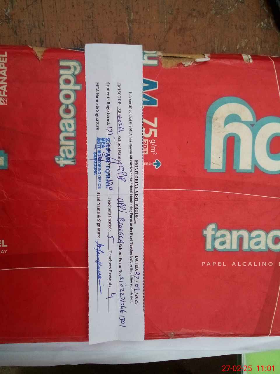 | Attendance Register | Head Teacher | MEA with School | Visit Proof |