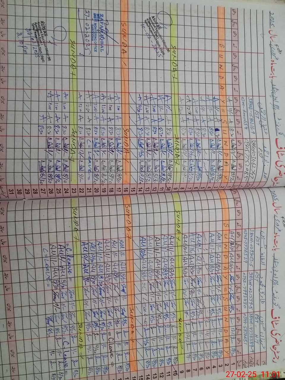| CNIC | Full Name | Designation | R/C | Absence During Last Calender Month |