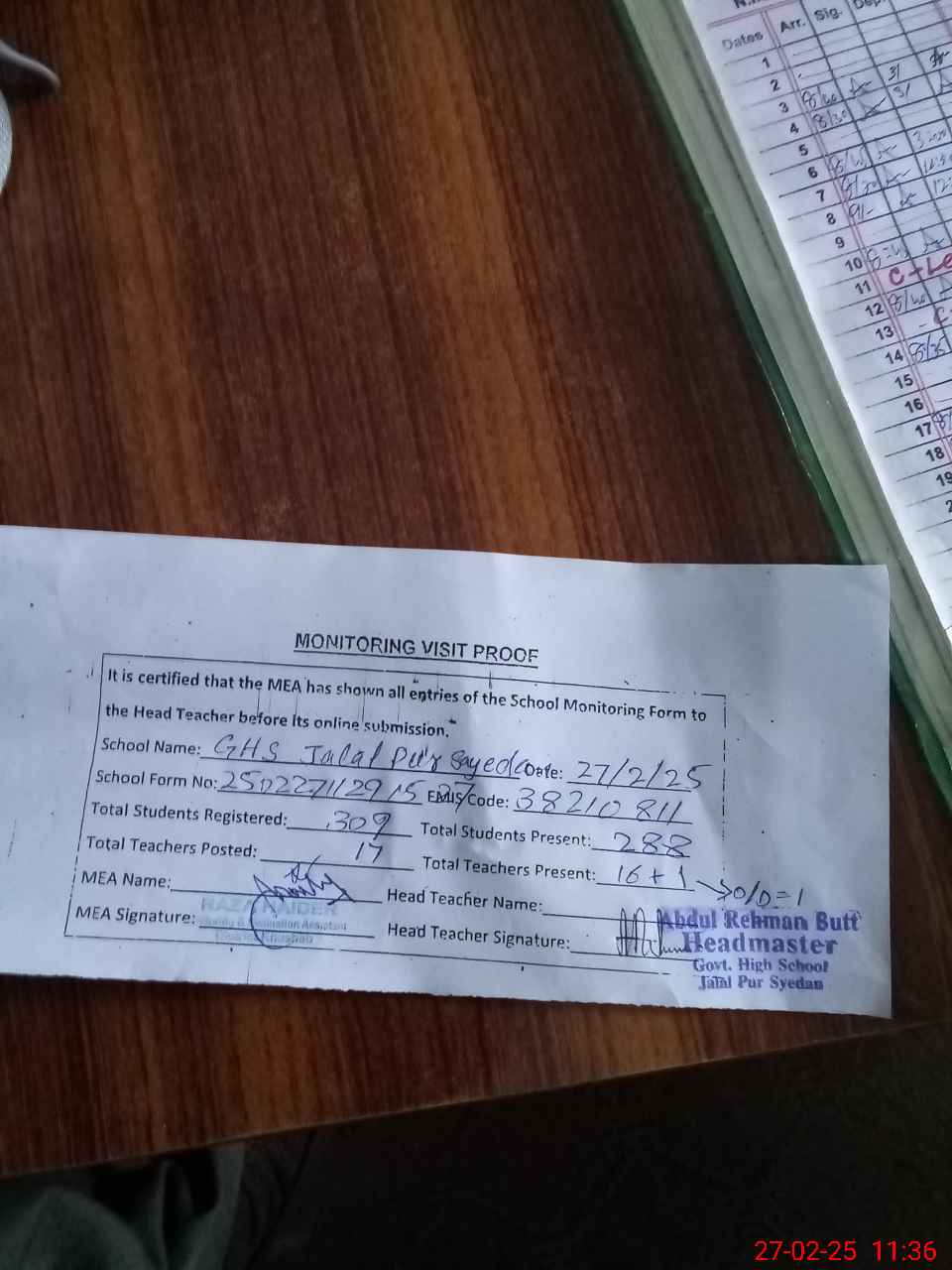 | EMIS Code: 38210811 | Name of School: GHS JALAL PUR SAYEDAN | |||