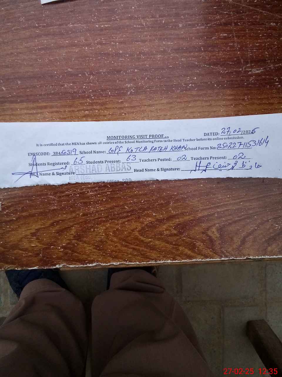 | EMIS Code: 38450319 | Name of School: GPS KOTLA FATEH KHAN | |||