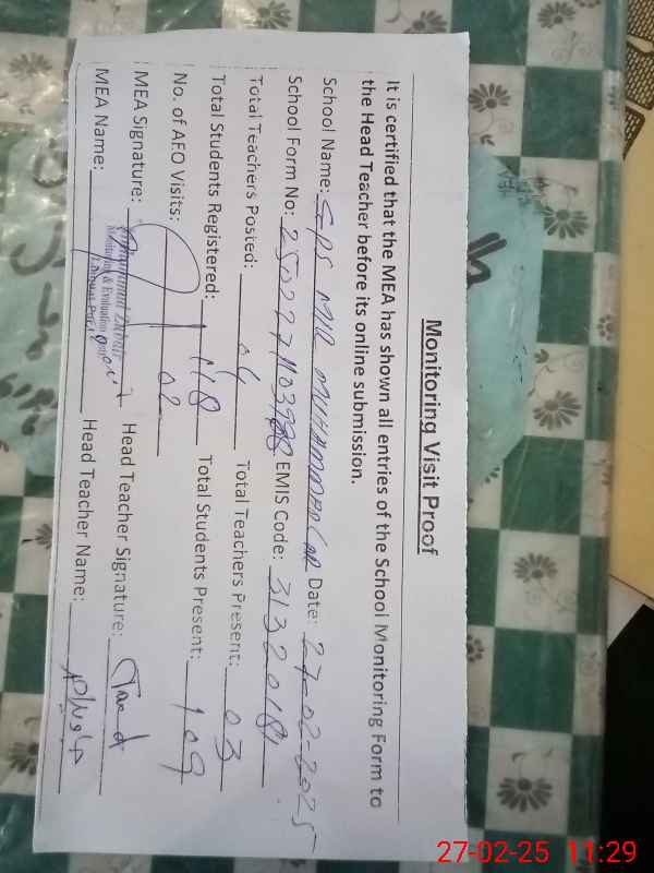 | EMIS Code: 31320181 | Name of School: GPS MIR MUHAMMAD LAR | |||