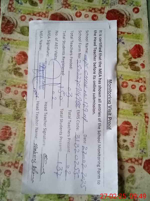 | EMIS Code: 31320255 | Name of School: GPS CHAK NO 129 NP | |||