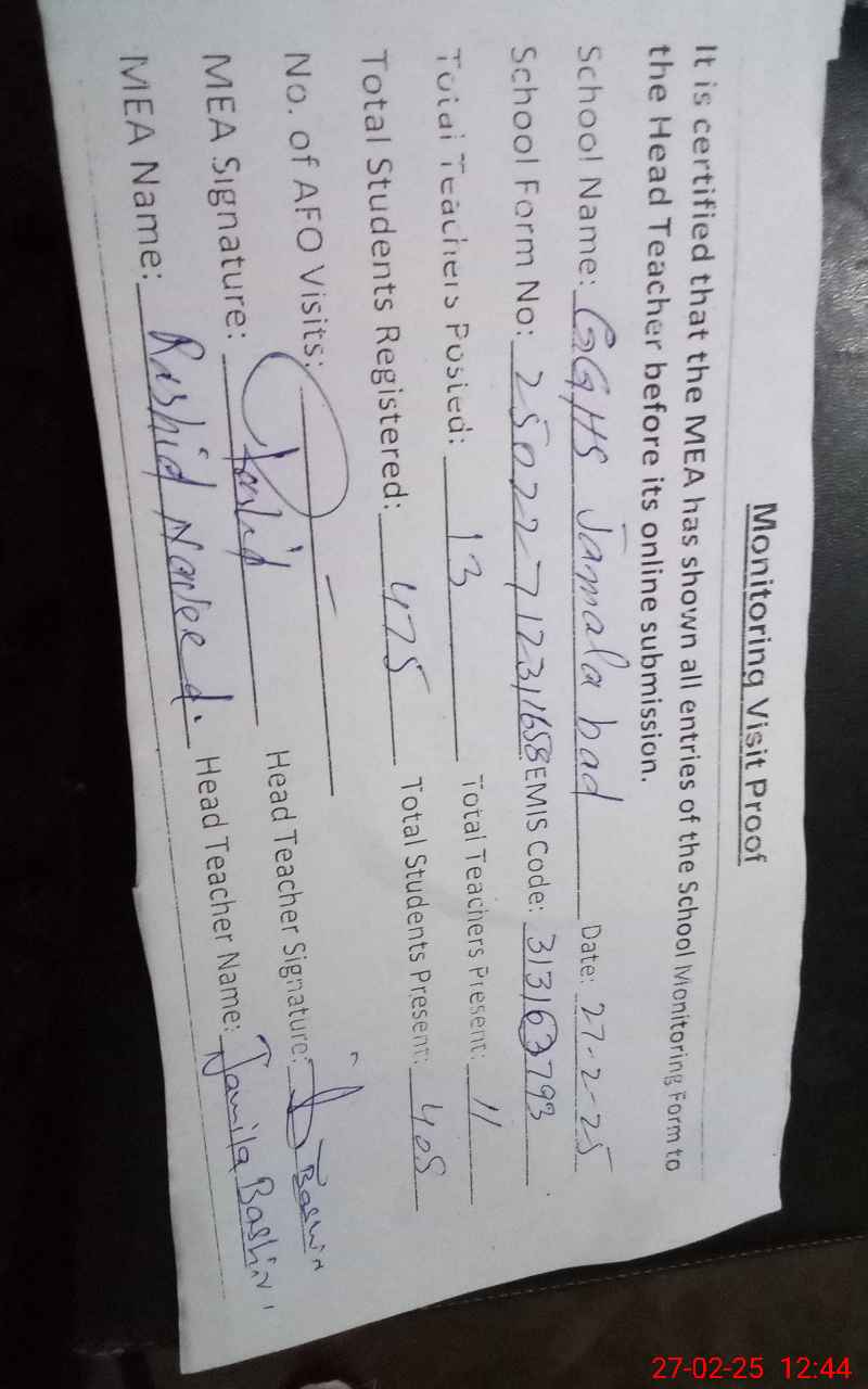 | EMIS Code: 31310793 | Name of School: GGHS JAMAL ABAD | |||