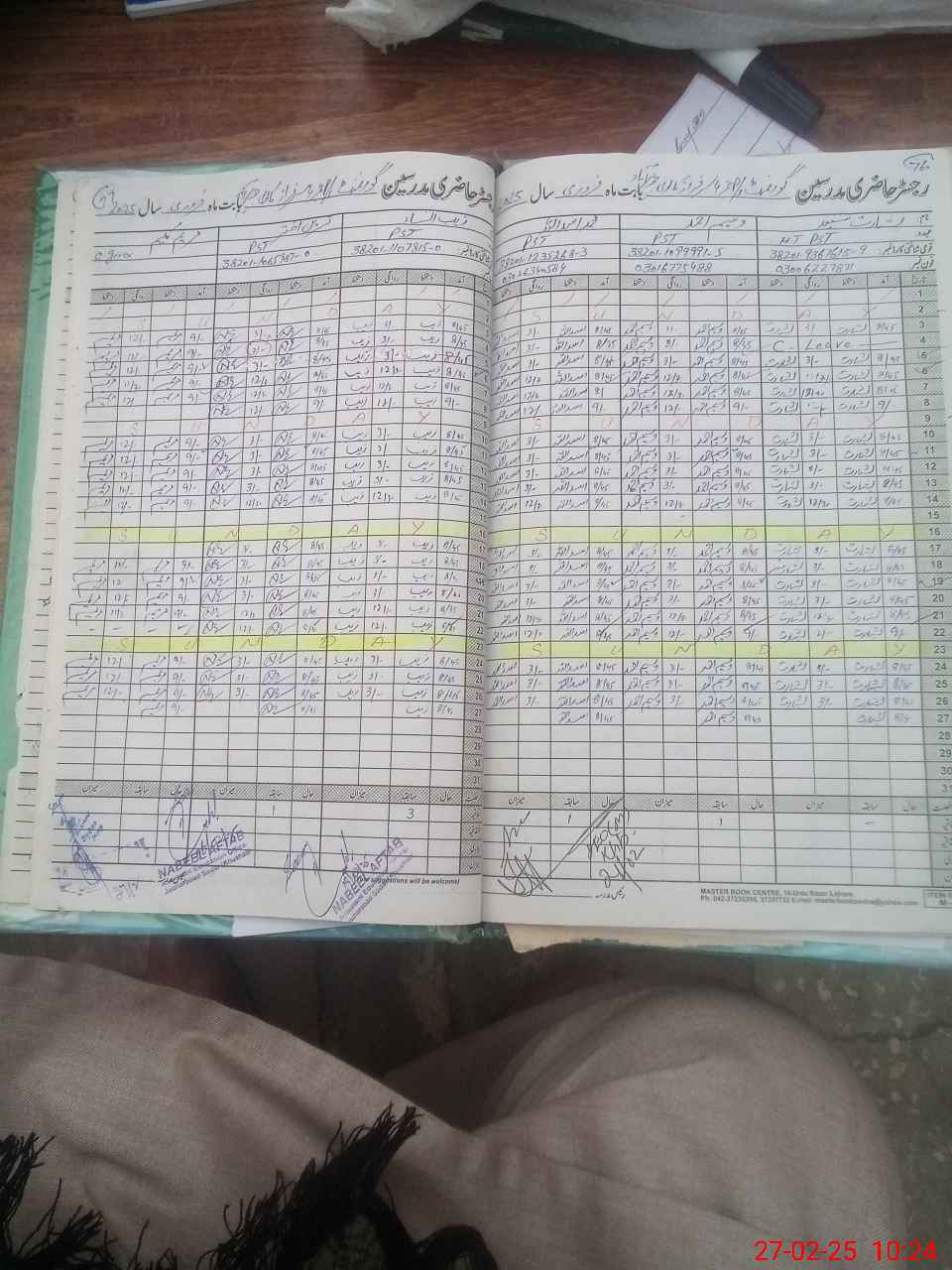 | CNIC | Full Name | Designation | R/C | Absence During Last Calender Month |