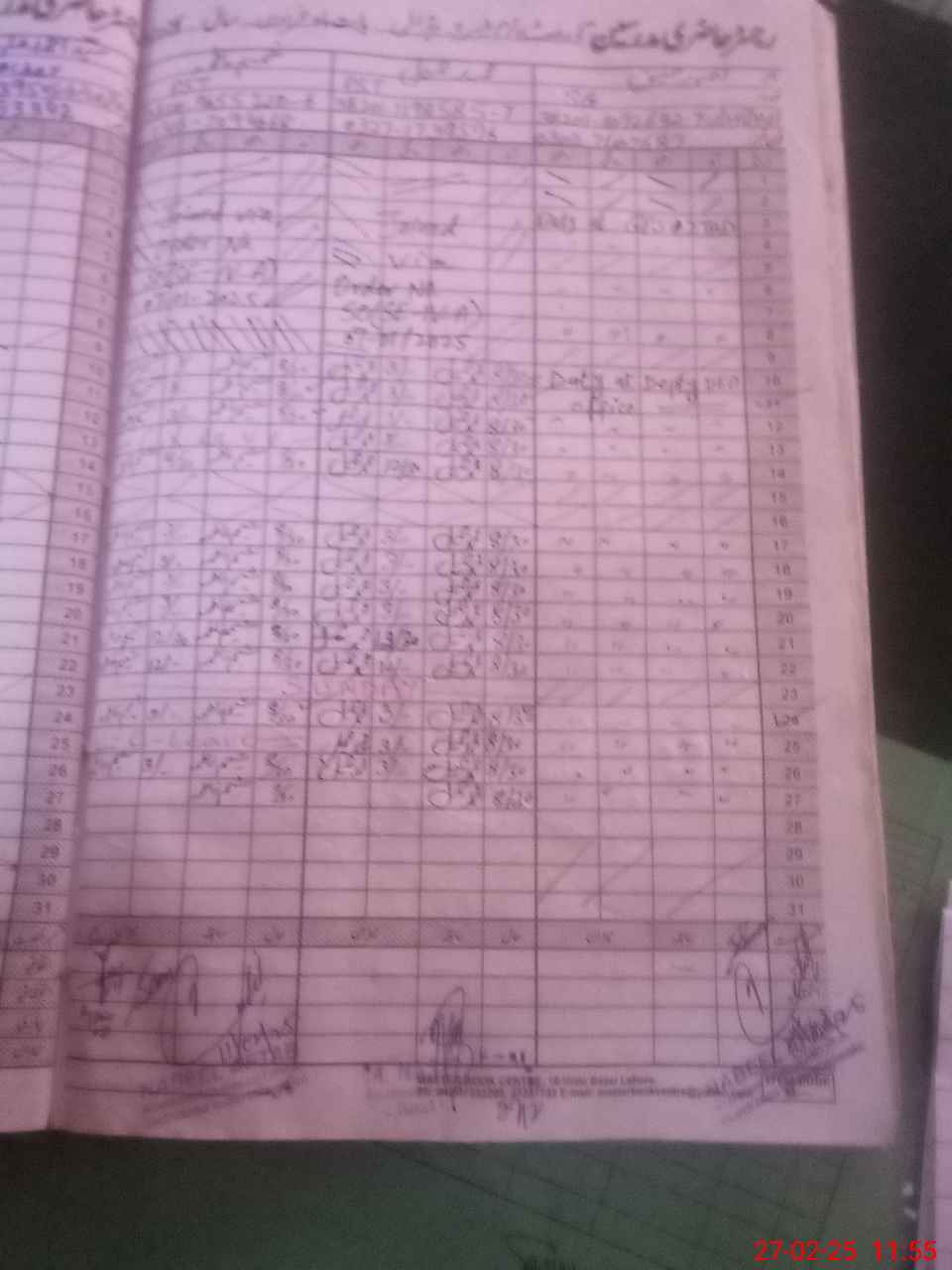 | CNIC | Full Name | Designation | R/C | Absence During Last Calender Month |