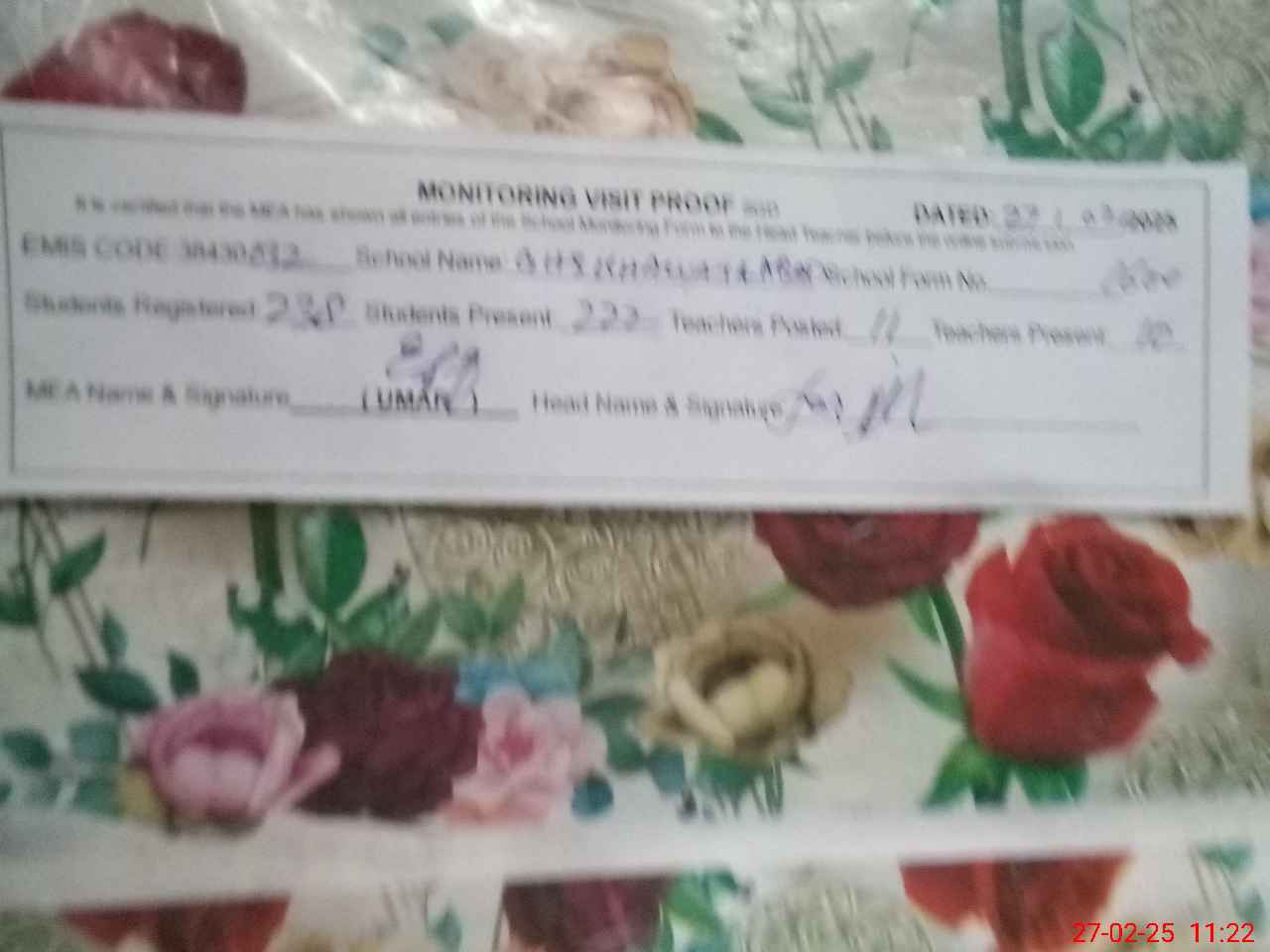 | EMIS Code: 38430032 | Name of School: GHS KHAWAJA ABAD | |||